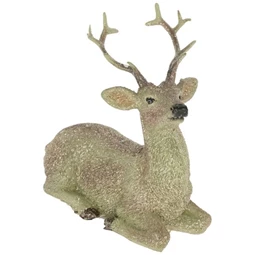 Dekoráció szarvas fekvő, glitteres poly 11,5x5,8x12,5 cm khaki