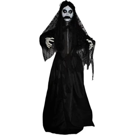 Halloween dekoráció kisértet fekete óriás figura hangot adó, mozgó LED-es műanyag, textil 120x18x170 cm fekete
