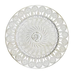 Tányér műanyag kerek teli mintás, vintage, műanyag, 33x33x2 cm, ezüst
