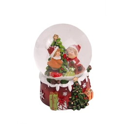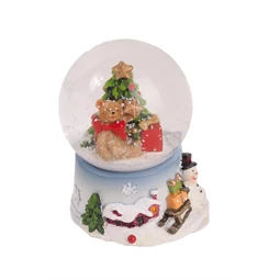 Hógömb havazó, maci karácsonyfával, ajándékokkal 4,5x6,5cm színes