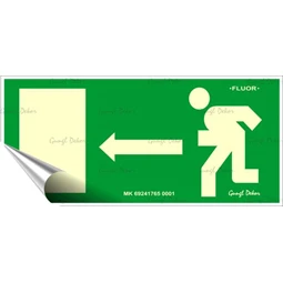 A „Vészkijárat” fluoreszkáló információs matrica jól látható jelölést biztosít a menekülési útvonalak és vészkijáratok egyértelmű azonosításához. A speciális, utánvilágító felület fény hatására feltöltődik, majd sötétben sárgás-zöldes fényt bocsát ki, így áramszünet vagy rossz látási viszonyok esetén is könnyen észlelhető marad.