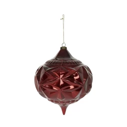Karácsonyfadísz Óriás gömb hagyma alakú, gyöngyház fényű, akasztós műanyag 20x26 cm bordó