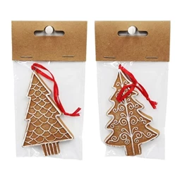 Dekoráció mézeskalács fenyőfa, akasztós poly 6,1x1x9,4 cm barna, fehér 2 féle, 1db