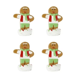 Dekoráció mézeskalács figura ruhában, sállal poly 2,8x1,6x3,9 cm zöld, barna 4db/csomag
