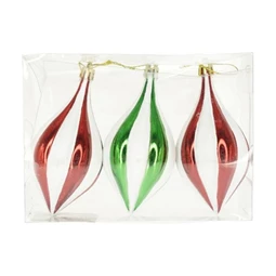 Karácsonyfadísz hosszúkás műanyag 18x6,1x12,8 cm piros, zöld 3db/csomag