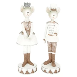 Dekoráció Egér fiú, lány ruhában álló poly 4,5x4,5x14,5 cm fehér, bézs 2 féle, 1db