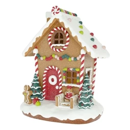 Dekoráció Mézeskalács ház LED-es poly 19,9x9,5x23 cm barna, fehér