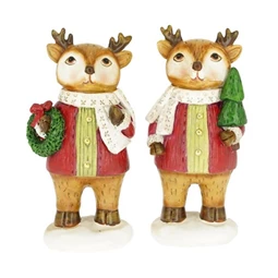 Dekorráció Szarvas fenyővel, koszorúval álló poly 5,5x4,5x12,5 cm barna, piros 2 féle, 1db