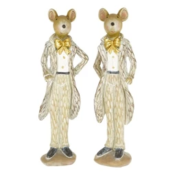 Dekoráció Egér ruhában, nyakkendővel álló poly 4x3x14 cm bézs, fehér 2 féle, 1db