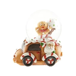 Hógömb kisautón, mézeskaláccsal, Mikulással poly, üveg 6,8x6cm színes